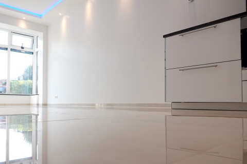 spacious and light thanks to the light walls and windows on the street side. The beautiful grey polished tile (60cm x 60cm) has underfloor heating.
