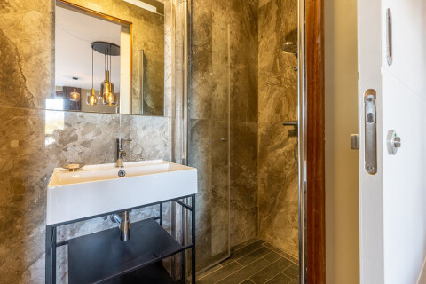 This beautiful new and fully renovated apartment is situated on the first floor of the building. The apartment gives a beautiful view on the street and Neude. It's has a nice big livingroom with open kitchen which is equipped with all necessary equipment. Next to the livingroom the apartment has big bedroom at the frond side and in the middle a second bedroom which now is equipped with a bunkbed which can also be replaced with a desk. The apartment has a very nice bathroom with shower, sink and washingmachine/dryer combination. It has a seperate toilet and on the ground floor the apartment has it's own storage.