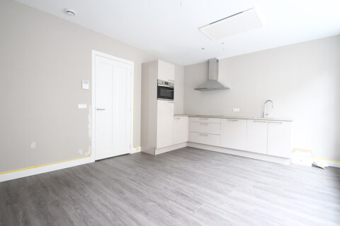 Dit prachtig nieuwe appartement is gelegen op de 1e verdieping. Aan de voorzijde is de ruime woonkamer met L-vormige keuken die is v.v. alle benodigde inbouwapparatuur. Aan de achterzijde bevindt zich de ruime slaapkamer die tevens toegang geeft tot een dakterras van ca. 8m2. In het midden is de badkamer gelegen die is v.v. een inloopdouche, wastafel en toilet. Er is nog een aparte berging met wasmachine aansluiting.