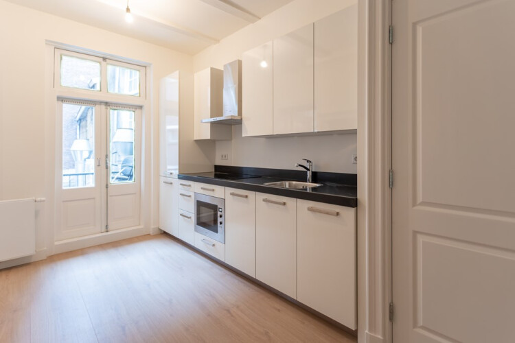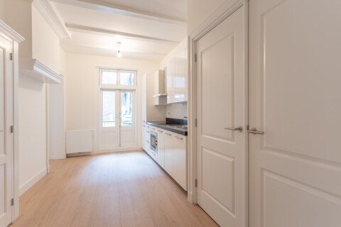 Located on the first floor. Entry into the spacious hall. This provides access to all areas. The living area is located at the front. From the living room you have a beautiful view over the Neude. On the side of the living room is a small space that can be used as a workplace. The separate kitchen is located at the rear of the house. The kitchen is equipped with various built-in appliances and therefore offers every comfort. The balcony can be reached from the kitchen through two French doors. At the rear of the apartment is a spacious bedroom. The bathroom has a modern walk-in rain shower, sink, towel radiator and a separate room with the washing machine connection. The apartment has a separate toilet with fountain.