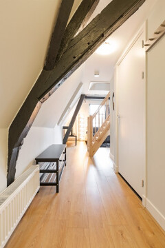 Het appartement is gelegen op de tweede verdieping van dit recentelijk gerenoveerde pand. Het appartement kenmerkt zich door de authentieke balkenconstructies. U komt het appartement binnen in de woonkamer van ca. 30m2. Hier vindt u tevens de open keuken, welke is voorzien van een vaatwasser, oven/magnetron en een 4-pits gasfornuis van het merk Siemens. Er is een aparte koelkast/vriezer. Vanuit de woonkamer heeft u toegang tot de 1e slaapkamer van circa 10m2. Op deze verdieping vindt u tevens de badkamer, welke is voorzien van een douche, wasmachine en wastafel. Daarnaast is er een separaat toilet. Middels een vaste trap in de woonkamer heeft u toegang tot de vliering / 2e slaapkamer van circa 18 m2. Kortom een prachtig appartement op een toplocatie!