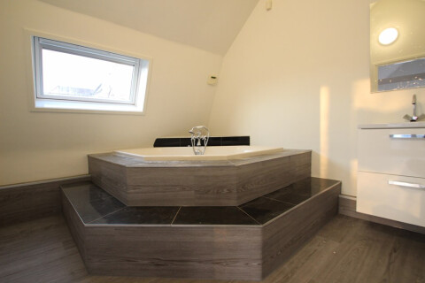 On the first floor, the apartment has a spacious bedroom of approx. 25m² with balcony. Also located here a 2nd bathroom with whirlpool tub and sink. The apartment has its own private parking.