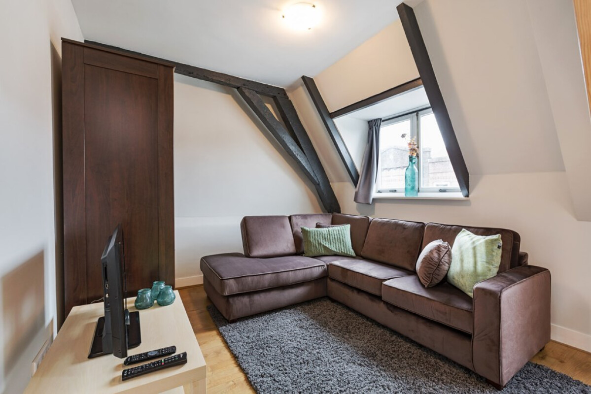 This beautiful apartment is located on the Voorstraat in the centre of Utrecht. The corner building called ‘in den Gulden Bergh’ is monumental and originates from the 17th century. The Voorstraat is a street in the centre of Utrecht. The street is slightly curved and approximately 300 meters long. The Voorstraat already existed around 1300. All facilities, such as a supermarket, restaurants and various cafes are within walking distance. The Janskerkhof and de Neude are also in close proximity. Utrecht_Central Station can be reached easily and quickly, both by bus with in 3 minutes and on foot with in 10 minutes.