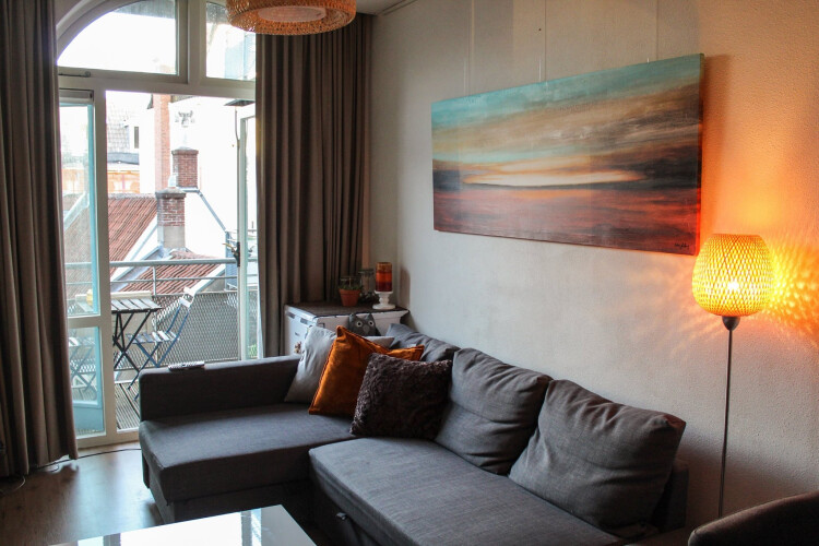 Het appartement bestaat uit een woonkamer met open keuken, een slaapkamer, een badkamer en een privé-balkon. Je kunt ook gebruik maken van het gedeelde dakterras van 60m2!