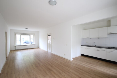 Dit appartement is gelegen op de begane grond van een hoekpand. Het appartement wordt gekenmerkt door veel lichtinval en een mooie tuin van ca. 25m2, gelegen op het westen. U komt binnen in de woonkamer. Aan de achterzijde is de half open keuken geleden die is v.v. een kookplaat, afzuigkap en koelkast. Het appartement telt 2 slaapkamers en een badkamer. Deze badkamer is voorzien van een bad/douche en wastafel en is een separaat toilet.