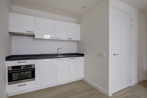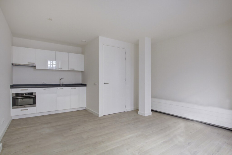 Dit prachtige appartement is gelegen op de 1e verdieping van het pand. Het heeft een ruime woonkamer met open keuken die is v.v. diverse inbouwapparatuur zoals een koelkast, vaatwasser, combi-oven, inductiekookplaat en afzuigkap en een zwart kunststof werkblad. Er is een slaapkamer die ook toegang geeft tot de badkamer die is v.v. een douche, toilet, wastafel en wasmachine aansluiting. Vanuit de centrale hal op begane grond is er middels een trap met fietsgoot toegang tot de bergingen. Elk appartement beschikt over een eigen berging, de grootte hiervan varieert en is afhankelijk van de grootte van het appartement. Er is tevens een gemeenschappelijke berging aanwezig in de kelder, welke met name is bedoeld voor de appartementen met een kleinere berging waar geen fiets in past. De fiets kan in deze gemeenschappelijke berging gestald worden.