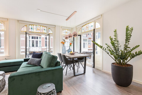 This corner apartment is located on the 1st floor of a beautiful building with authentic details. The apartment has a spacious living room with open kitchen that is equipped with a dishwasher, fridge, freezer, oven, hob and extractor. The living room has 2 beautiful French balconies and authentic stained glass windows. There is a spacious bedroom and a bathroom with a shower, sink and washing machine connection. There is a separate toilet. In short, a great apartment in the center of Utrecht.