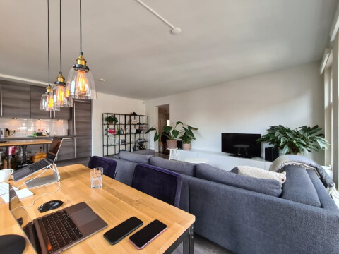This corner apartment is located on the 2nd floor of a beautiful building with authentic details. The apartment has a spacious living room with open kitchen that is equipped with a dishwasher, fridge, freezer, oven, hob and extractor. The living room has authentic stained glass windows. There is a spacious bedroom and second space which can be used as an office. From here on you also have access to a nice and big roofterrace. There is a bathroom with a shower, sink and washing machine connection. There is a separate toilet. In short, a great apartment in the centre of Utrecht.