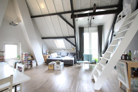 Deze prachtige loft bevindt zich op de 3e verdieping van een prachtig monumentaal pand midden in het centrum van Utrecht. U komt de loft binnen in de ruime woonkamer die zicht kenmerkt door de hoge plafonds, tevens beschikt de loft over een Frans balkon met prachtig uitzicht op de Dom. Middels een trap in de woonkamer heeft u toegang tot een slaapvide. Onder de slaapvide is de gesloten keuken gelegen die is uitgerust met een koelkast met vriesvak, vaatwasser, over, kookplaat en afzuigkap. Naast de keuken bevindt zich de badkamer die is voorzien van een douche, wastafel, toilet en wasmachine. Kortom een prachtig en unieke loft.