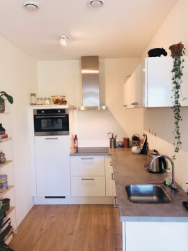 De ruime woonkamer staat in verbinding met de open keuken en kijkt uit op het zonnige balkon, welke een gunstige ligging heeft op het zuiden. De open keuken is voorzien van diverse inbouwapparatuur. De slaapkamer is ruim en licht door de brede raampartij. Vanuit de slaapkamer heeft u tevens toegang tot het balkon. De badkamer is betegeld en heeft een inloopdouche, wastafel en een designradiator en vloerverwarming. Er is een separaat toilet en het appartement heeft een berging met wasmachine/droger aansluiting. Op de begane grond is nog een gezamenlijke fietsenstalling en een afgesloten parkeerplaats.
