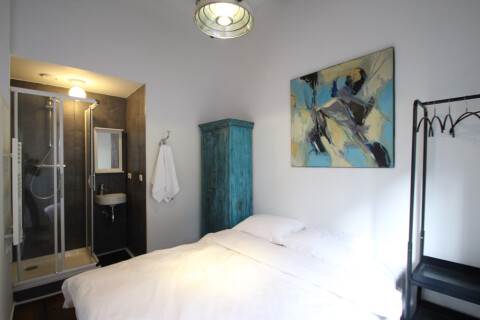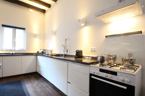 Deze prachtige en volledige gemeubileerde loft is gelegen op prachtige locatie in een oud koets huis. Gelegen op de begane grond en beschikt over een ruime woonkamer 45m2 met toegang tot de zonnige stadstuin van ca. 30m2 met een riante L-vormige keuken welke is voorzien van diverse inbouwapparatuur. De aparte slaapkamer is ca. 10m2 groot en hier bevindt zich de douche met wastafel. Er is een separaat toilet. Het appartement kenmerkt zich verder door houten kloostervloer en de houten balken op het plafond. Er is een wasmachine aanwezig voor gezamenlijk gebruik.