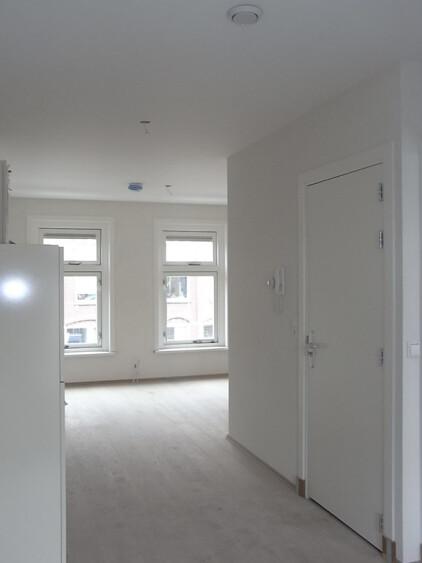 In een compleet gerenoveerde woning ligt dit knusse maar prachtige 2-kamer appartement. De woning is opgedeeld in 3 woonlagen met op iedere woonlaag een eigen zelfstandig appartement, dit appartement is gelegen op de 1e verdieping van het pand. Bij binnenkomst heeft u toegang tot de woonkamer met open keuken welke is v.v. van een koel/vries combinatie, vaatwasser, 4-pitskookplaat, oven tevens is hij verzien van een keurig aanrechtblad. Via de woonkamer heeft u toegang tot de slaapkamer aan de achterzijde van het pand, de slaapkamer is ongeveer 10m2 groot. Vanuit de woonkamer heeft u ook toegang tot de nieuwe badkamer welke beschikt over een douche, wastafel toilet en wasmachine.