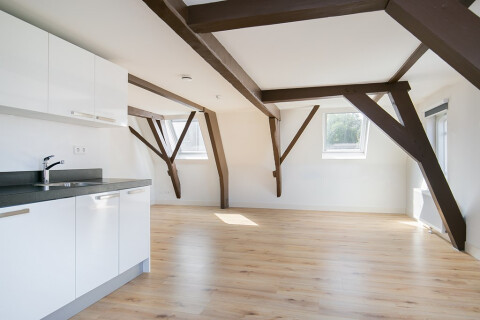 Dit prachtig volledig gerenoveerd appartement is gelegen op een unieke locatie in een voormalig pandhuis waar een bank van lening was gevestigd. Het appartement is hoogwaardig afgewerkt en gelegen op de 3e verdieping van het pand. Het appartement is voorzien van een ruime woonkamer met open keuken welke is v.v. van alle benodigde inbouwapparatuur. Daarbij heeft het appartement een ruime slaapkamer en badkamer met douche, wastafel en wasmachine aansluiting. Er is een separaat toilet aanwezig. Kortom een prachtig hoogwaardig appartement.