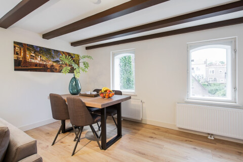 This property is situated on a beautiful location on a quite street behind the Oudegracht This is the most famous canal in the Dutch city of Utrecht. The approximately two kilometer long canal is the connector between the Kromme Rijn and the Vecht and bisects the entire city from south to north. For centuries it has been the main artery of the city. The yards and wharfs of Utrecht Oudegracht and Nieuwgracht are unique in the world. You are right in the city center which is surrounded by many shops, cafés and restaurants. Utrecht Central Station is within 5 minutes walking distance from the apartment. You can also visit in the immediate area for groceries.
