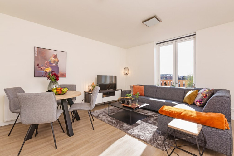 € 1.395,- per month exclusive g/w/e, cable TV, internet, service costs and taxes. Inclusive upholstery, furniture and taxes.