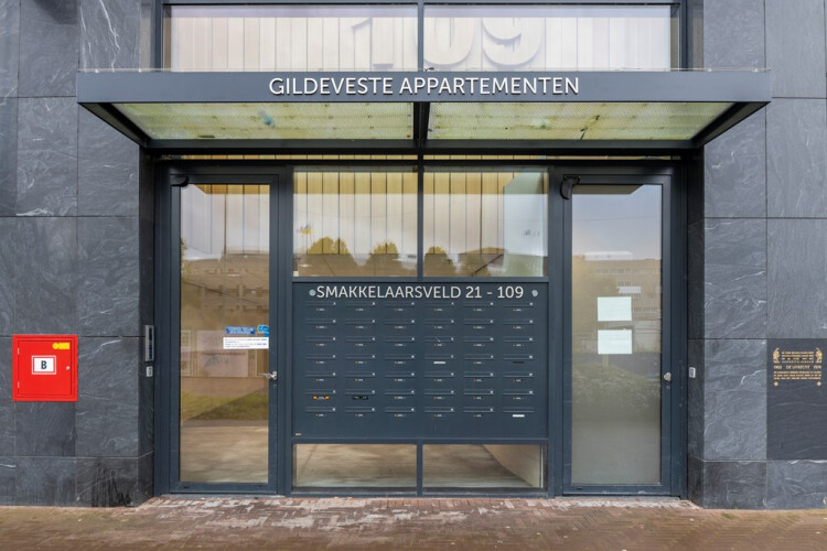 Afgesloten centrale en beveiligde entreehal met bellentableau, intercom en lift. Toegang tot fietsenberging en parkeerkelder.