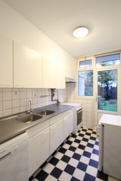 Dit prachtige appartement is gelegen op de begane grond van het pand. Het appartement wordt gekenmerkt door veel lichtinval en een mooie tuin van ca. 25m2, gelegen op het westen. U komt binnen in de woonkamer. Vanaf hier heeft u ook toegang tot de gesloten keuken van ca. 6m2. De keuken is voorzien van alle benodigde apparatuur, zoals een vaatwasser, koelkast met vriesvak, oven en 4-pits gasstel met afzuigkap. Het appartement telt 2 slaapkamers en een badkamer. Deze badkamer is voorzien van een douche, toilet en wastafel.