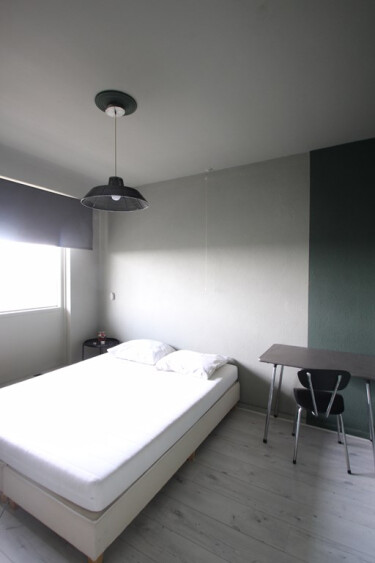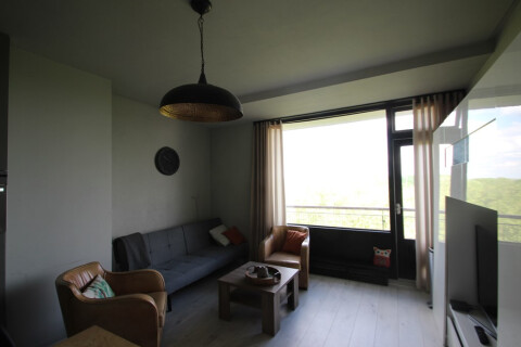 This beautiful furnished 2-room apartment is located on the 6th floor of a large apartment complex. Through the entrance you have access to the living room, which is app. 18m2 and located at the back of the apartment. Adjacent to the living room there is a half open kitchen which has a refrigerator, gas stove, microwave and washing machine. From the living room you have access to the balcony of approx 6m2. And is situated on the Northeast and gives you a magnificent view of the park, you can also see Utrecht city and the Dome. The bedroom is at the front of the apartment and is about 8m2 and has a built-in wardrobe. Between the living room and the bedroom is a small bathroom which has a shower, sink and toilet.