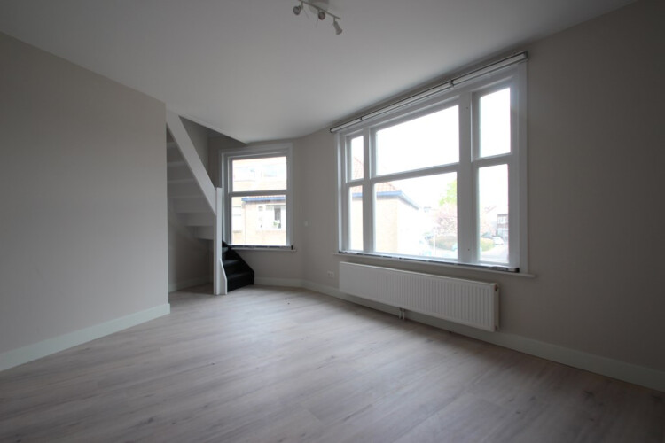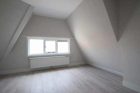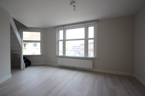 Dit volledig opgeknapt 3-kamer appartement is gelegen op de 1e en 2e verdieping van het pand. Op de 1e verdieping heeft u toegang tot de woonkamer aan de voorzijde en een gesloten keuken aan de achterzijde. Deze keuken beschik over diverse inbouwapparatuur. Vanuit de keuken heeft u ook nog toegang tot een klein balkon aan de achterzijde. Middels een trap in de woonkamer gaat u naar de bovenste verdieping hier bevinden zich 2slaapkamers. Ook is de badkamer op deze verdieping gelegen met douche, wastafel en wasmachine aansluiting. Er is een separaat toilet.