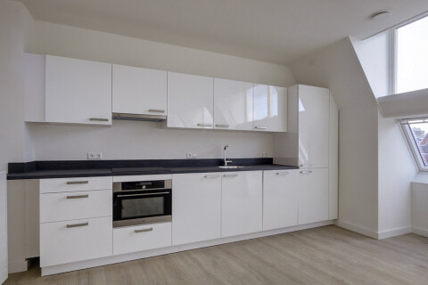 Dit prachtige appartement is gelegen op de 3e verdieping van het pand. Het heeft een royale woonkamer met open keuken die is v.v. diverse inbouwapparatuur zoals een koelkast, vaatwasser, combi-oven, inductiekookplaat en afzuigkap en een zwart kunststof werkblad. Het appartement heeft 2 ruime slaapkamers. De badkamer is v.v. een douche, ligbad, toilet en wastafelmeubel. Er is een apartem ruimte met een wasmachine/droger aansluiting.  Vanuit de centrale hal op de begane grond is er middels een trap met fietsgoot toegang tot de bergingen. Elk appartement beschikt over een eigen berging, de grootte hiervan varieert en is afhankelijk van de grootte van het appartement. Er is tevens een gemeenschappelijke berging aanwezig in de kelder, welke met name is bedoeld voor de appartementen met een kleinere berging waar geen fiets in past. De fiets kan in deze gemeenschappelijke berging gestald worden.
