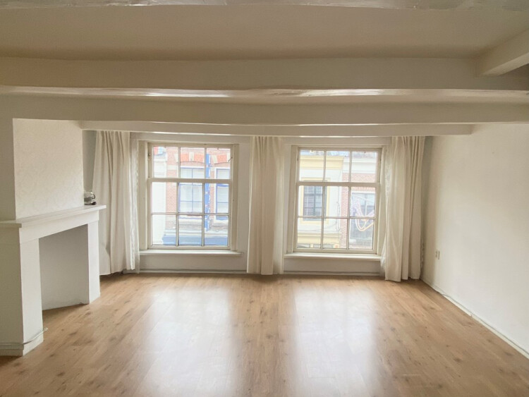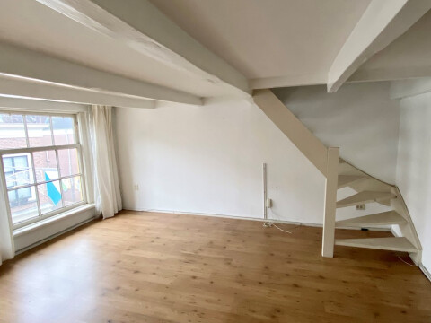 Entry into the living room. The living room has an authentic ceiling. The windows at the front give a view over the Springweg. A spacious landing, ideal for a workplace, gives access to the kitchen. The kitchen is located at the rear of the property. This is equipped with an oven, extractor hood, gas hob, fridge and freezer, dishwasher, washing machine and dryer. The landing also provides access to the bathroom. This is equipped with shower and toilet.