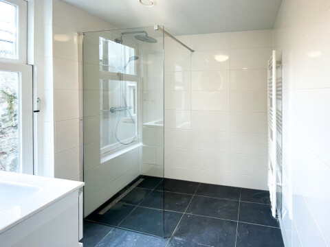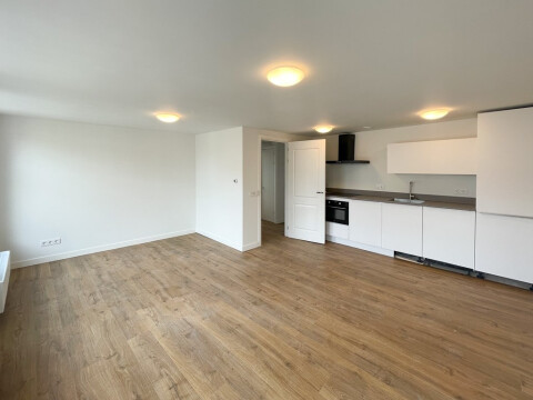 Entrance hall, hanging toilet with hand basin. The spacious, bright living room has an open kitchen. The open kitchen is equipped with a hood, induction hob, combi-microwave oven and fridge-freezer. Via the stairs you have acces to the bedroom and a second room (no standing height). The modern bathroom has a luxurious washbasin cabinet, design radiator and a walk-in shower.