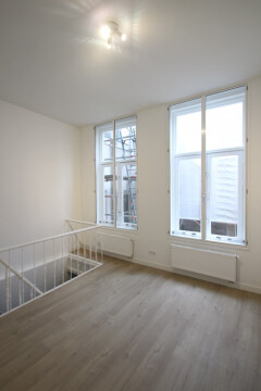 Geniet van de luxe van modern wonen in een historische omgeving. De appartementen zijn ontworpen met oog voor detail en bieden een perfecte combinatie van comfort en stijl. In totaal hebben wij 5 nieuwe appartementen beschikbaar in dit complex. Dit appartement is gelegen op de 2e verdieping aan de achterzijde en beschikt over een ruime woonkamer, die toegang geeft tot de ruime slaapkamer. In de ruime slaapkamer is nog een trap naar beneden waar u een extra kamer heeft. Er is een gesloten keuken bij de entree die is v.v. alle benodigde inbouwapparatuur. De badkamer is v.v. met douche, wastafel en wasmachine aansluiting. Er is een separaat toilet.