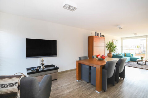 Bij het betreden van de eerste verdieping komt u in de ruime woonkamer met open keuken. Door de vele raampartijen aan zowel de voor- als achterzijde ontstaat er veel natuurlijk licht waardoor het heerlijk vertoeven is. De keuken beschikt over alle benodigde inbouwapparatuur. Des al niet te min is er via de woonkamer een heerlijk dakterras te bereiken welke is gelegen op het zuiden.