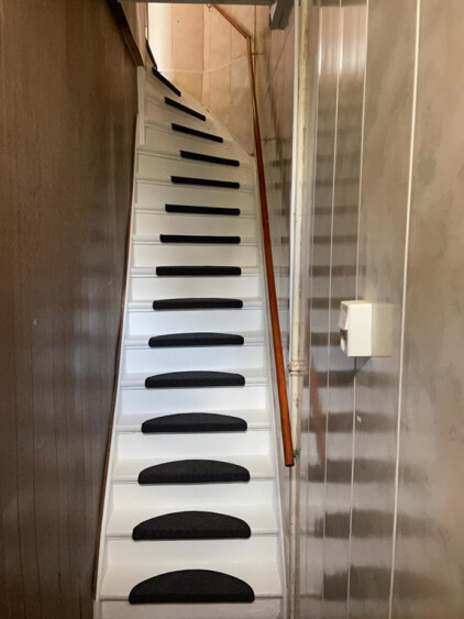 Landing with skylight and closet with central heating boiler and washing machine, spacious front room with dormer window and closet, hallway with storage cupboard, bathroom (new 2021) fully tiled with sink and walk-in shower, back room with door but cozy roof terrace.