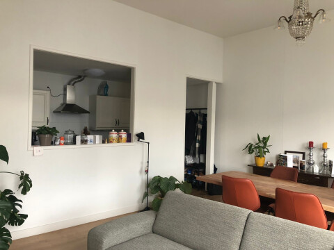 Het appartement is ongeveer 6 jaar geleden opgeknapt/verbouwd, heeft een mooie laminaatvloer. De woonkamer heeft een half open keuken met vaatwasser en oven. Vanuit de keuken loop je door naar de badkamer met douche, wastafel en toilet en naar de ruime slaapkamer. Dankzij het hoge plafond en grote raampartijen heeft het appartement een ruime uitstraling.