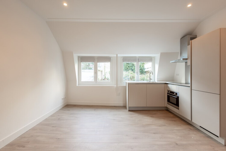 The attractive living room with open kitchen is located on this floor. This has several windows. The kitchen is completely new and modern. This is equipped with all built-in appliances such as an oven, extractor hood, hob, built-in fridge with freezer compartment and dishwasher. There is a separate toilet with fountain on this floor. The bedroom has enough space to also create a workplace for 'working from home'. The bathroom is modern and equipped with a walk-in rain shower, sink and washbasin. The entire apartment is equipped with window coverings and built-in lighting.
