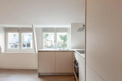 Op deze etage is de sfeervolle woonkamer met open keuken gelegen. Deze is voorzien van meerdere ramen. De keuken is geheel nieuw en modern. Deze is voorzien van alle inbouwapparatuur zoals een oven, afzuigkap, kookplaat, inbouw koelkast met vriesvak en vaatwasser. Op deze etage is een apart toilet met fontein gelegen. De slaapkamer heeft voldoende ruimte om tevens een werkplek te creëren voor het 'thuiswerken'. De badkamer is modern en voorzien van een inloop regen douche, wastafel en wastafelmeubel. Het gehele appartement is voorzien van raambekleding en ingebouwde verlichting.