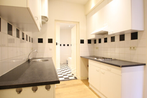 Dit prachtige appartement is gelegen op de 1e verdieping van dit prachtig pand, de opgang wordt gedeeld met het appartement op de 2e verdieping. Het appartement heeft een ruime woonkamer met half open keuken die is v.v. een kookplaat en afzuigkap. Het appartement heeft een slaapkamer van ca. 8m2. De badkamer is v.v. een bad, inloopdouche, wastafel, toilet en wasmachine aansluiting. Het gehele appartement is voorzien van een prachtige parket houtenvloer.