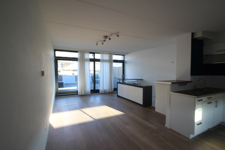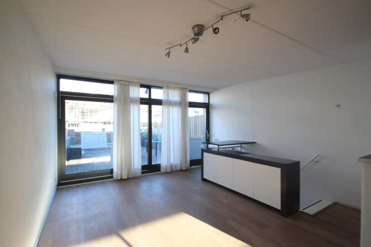 Dit ruim gestoffeerde 3-kamer appartement is gelegen op de 2e en 3e verdieping van een kleinschalig appartementencomplex. Bij binnenkomst op de 2e verdieping komt u in de hal waar de 2 slaapkamers van respectievelijk 8 m2 11m2 zijn gelegen. Op deze verdieping is ook de badkamer gevestigd die is voorzien van een ruime douche, wastafel en wasmachineaansluiting. In de hal bevindt zich tevens het toilet. Middels een trap gaat u naar de 3e verdieping waar u in de ruime woonkamer komt, deze kamer beschikt over veel lichtinval middels een grote raampartij. Aan de woonkamer grenst een open keuken die is voorzien van een koelkast, vaatwasser, oven en een 4-pits elektrische kookplaat. Vanuit de woonkamer heeft u ook nog toegang tot een ruim dakterras van ca. 30m2, dit dakterras is gelegen op het oosten zodat u bijna de gehele dag van de zon kunt genieten.