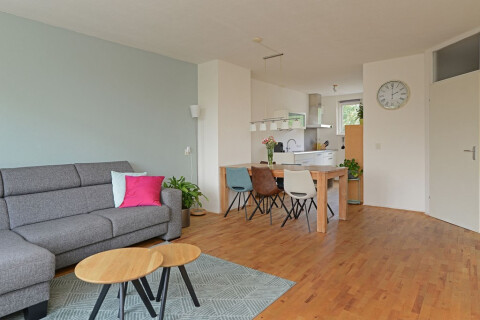 Goed onderhouden driekamerappartement met zonnig balkon gelegen. Op de 2e verdieping is de ruime en lichte woonkamer gelegen met toegang tot het riante en zonnige balkon. Aan de voorzijde is er een moderne open keuken gelegen met diverse inbouwapparatuur. Op de boven verdiepin is een dakkapel waar volop ruimte is voor een werkplek. Van deze ruimte is gemakkelijk een aparte slaap-/ werkkamer te maken. Aan de achterzijde bevindt zich een riante slaapkamer met fraai uitzicht. De badkamer is voorzien van een hoekbad, toilet, wastafel en aansluiting voor de wasmachine. Aan de voorzijde bevindt zich de tweede slaapkamer.