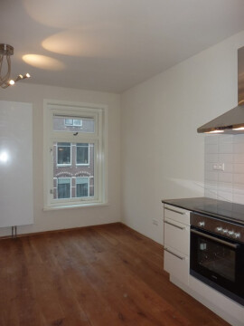 In een compleet gerenoveerde woning ligt dit knusse maar prachtige 2-kamer appartement. De woning is opgedeeld in 3 woonlagen met op iedere woonlaag een eigen zelfstandig appartement, dit appartement is gelegen op de 1e verdieping van het pand. Bij binnenkomst heeft u toegang tot de woonkamer met open keuken welke is v.v. van een koel/vries combinatie, vaatwasser, 4-pitskookplaat, oven tevens is hij verzien van een keurig aanrechtblad. Via de woonkamer heeft u toegang tot de slaapkamer aan de achterzijde van het pand, de slaapkamer is ongeveer 10m2 groot. Vanuit de woonkamer heeft u ook toegang tot de nieuwe badkamer welke beschikt over een douche, wastafel toilet en wasmachine.