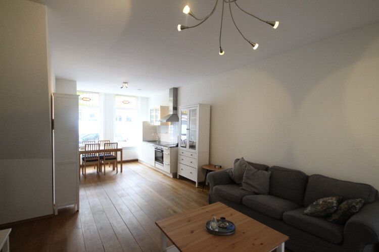 Dit appartement is een aantal jaar geleden compleet gerenoveerd. De woning is opgedeeld in 3 woonlagen met op iedere woonlaag een eigen appartement, dit appartement is gelegen op de begane grond. Bij binnenkomst heeft u toegang tot de woonkamer. De woonkamer beschikt over een echte houtenvloer, rolgordijnen aan de voorzijde en er hangen design lampen aan het plafond. De open keuken is v.v. van een koel/vries combinatie, vaatwasser, 4-pitskookplaat en oven. Via de woonkamer heeft u toegang tot de slaapkamer, de slaapkamer is ongeveer 10m2 groot en heeft openslaande deuren naar de tuin op het Zuidwesten van ongeveer 20m2. Vanuit de woonkamer heeft u ook toegang tot de nieuwe badkamer welke beschikt over een douche, wastafel, toilet en wasmachine.