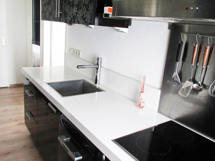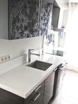 Woonkeuken met diverse inbouwapparatuur te weten: afzuigschouw, koel-/vriescombinatie, inductie kookplaat, vaatwasser en combi-oven, 2 woon-slaapkamers met beide toegang tot het balkon. Vanuit de keuken als vanuit de woonkamer is toegang tot het riante dakterras. Moderne badkamer voorzien van douche, vaste wastafel, wasmachineaansluiting en toilet.