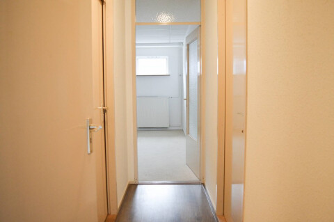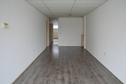 Entree naar de royale lichte woonkamer van ca.33m². Keuken en badkamer bevinden zich in één ruimte. Aan de achterzijde bevindt zich de ruime slaapkamer. Separate wasruimte.