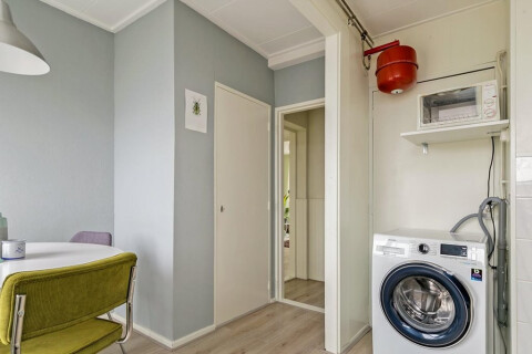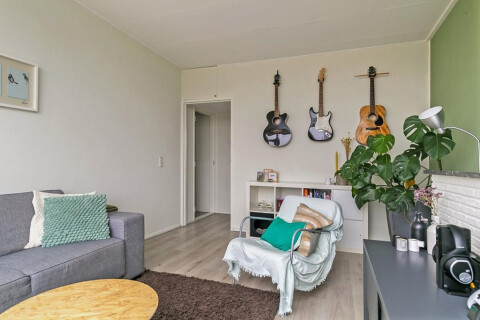 Dit gestoffeerd 3-kamer appartement is gelegen op de 4e verdieping van het complex. De woonkamer beschikt over veel lichtinval en is gesitueerd aan de voorzijde. De ruime gesloten keuken is gelegen aan de achterzijde van de woning, waaraan ook het balkon is gelegen. De keuken wordt in de loop van het jaar vervangen en deze wordt voorzien van een keramische kookplaat, afzuigkap, combi magnetron, vaatwasser en koelkast. Het appartement heeft 2 ruime slaapkamer van 13m2 en 11m2. In de entreehal bevindt zich de douche en een separaat toilet. De wasmachine aansluiting bevindt zich in de keuken. In de kelder van het complex is er een afzonderlijke ruime berging in de onderbouw ter grote van ongeveer 8m2.