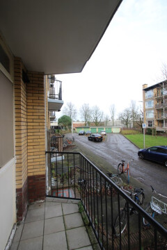 Dit gestoffeerd 3-kamer appartement is gelegen op de 1e verdieping met balkon aan zowel voor als achterzijde. De woonkamer beschikt over veel natuurlijk licht en is gesitueerd aan de voorzijde en is voorzien van zonnewering. De gesloten keuken is gelegen aan de achterzijde van de woning en is v.v. van diverse inbouwapparatuur. Vanuit hier heeft u ook toegang tot het balkon. Het appartement heeft 2 slaapkamers en een badkamer met douche en wastafel. Er is een separaat toilet. Er is een afzonderlijke ruime berging in de onderbouw ter grote van ongeveer 8m2.