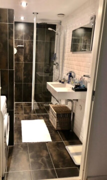 - Badkamer (6m²) met ligbad, aparte douche, wastafel en wasmachine.