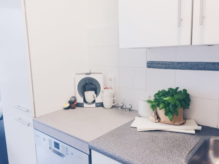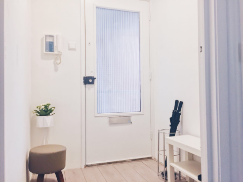 It's a private one-bedroom apartment (52m2) with a living room and bedroom with a queen sized bed. Amenities include chairs/table/couch/chest, 43 inch flat screen tv (cable), Wi-Fi, a full-equipped kitchen, dishwasher, fridge, freezer, Nespresso Dolce Gusto coffee maker, washing machine, and more.