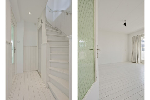 Binnenkomst in de hal. Goede omvang voor het binnen plaatsen van een kinderwagen en/of fiets. Trappenhuis.