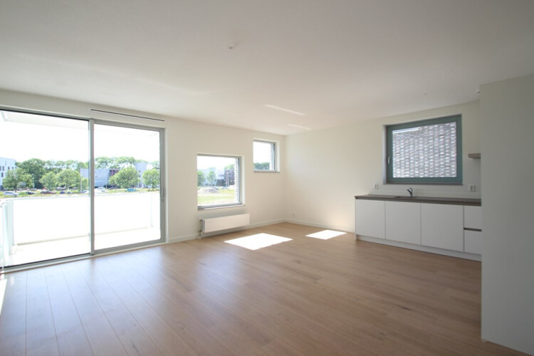 Gezamenlijke entree, brievenbussen en toegang tot de berging. Ieder appartement heeft een privé berging. Het appartement is gelegen op de 1e verdieping. Bij binnenkomst via de entreehal loopt u rechtdoor de ruime woonkamer in. De ruime woonkamer heeft een open keuken welke is v.v. van alle mogelijk inbouwapparatuur zoals een koelkast, vriezer, combi/oven, vaatwasser, 4-pits gasfornuis en afzuigkap. Vanuit de woonkamer heeft u ook toegang tot een ruim balkon met vrij uitzicht. Bij de keuken is ook nog een ruime berging gelegen met de CV en wasmachine/droger aansluiting.