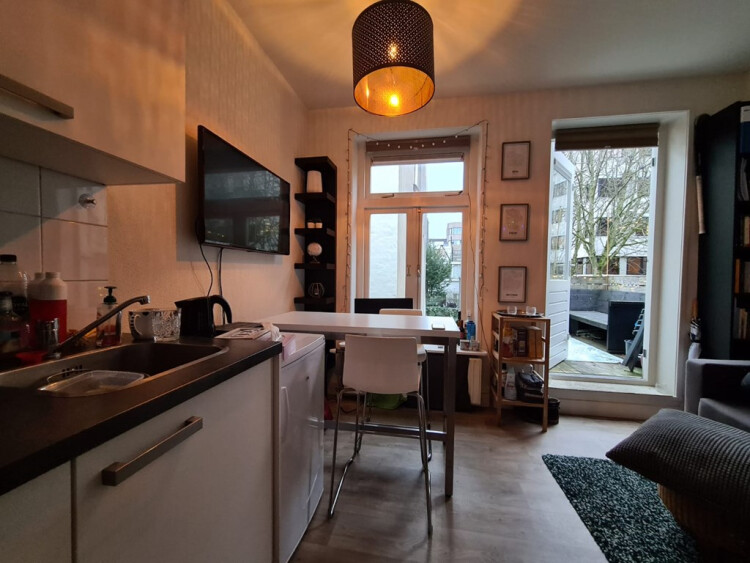 Characteristic and well-kept 2-room apartment available which is located in the cozy Wijk C on the Varkenmarkt in the center of Utrecht. This apartment was completely renovated a few years ago and has beautiful details such as original stained glass and and a nice teracce. The apartment is located on the first floor. The open kitchen with a fridge with freezer drawer and 4 pit stove. The bedroom has beautiful details. The details and finish make this apartment quite unique and definitely worth a visit.