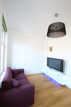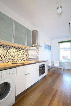 This cozy furnished 2-room apartment is located on the 1st floor of the house. The apartment is in good condition and fully insulated. On the front there is a cozy living room with open kitchen which is equipped with a fridge freezer, oven and a 4-burner stove . In the kitchen is also located a washing machine. At the backof the apartment there is a small bedroom with fitted wardrobes. From the bedroom you have access to both the bathroom and the roof terrace. The bathroom is equip with shower, sink and toilet. The roof terrace is 12m2 and is located on the south. To summarize an ideal apartment for an expat .