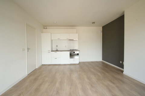 Het appartement bevindt zich op de 2e verdieping van het pand. De woonkamer heeft een oppervlakte van ca. 20m² en beschikt over een open keuken welke is v.v. diverse inbouwapparatuur (koelkast, vaatwasser, oven, gasfornuis en afzuigkap). Aan de voorzijde is de slaapkamer van ca. 6m² gelegen. De badkamer is voorzien van douche en toilet.
