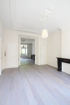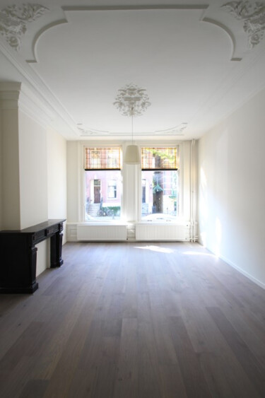 Het appartement bevindt zich op de beletage van het pand. De slaapkamer en woonkamer kun je scheiden van elkaar, door gebruik te maken van de schuifdeuren. Aan de achterzijde heeft u middels openslaande deuren toegang tot een ruim balkon die is gelegen op het oosten. De woning beschikt over een gesloten keuken aan de achterzijde en is v.v. diverse inbouwapparatuur (koelkast, vriezer, oven, gasfornuis en afzuigkap).De badkamer is voorzien van douche. Tevens is er een separaat toilet aanwezig.