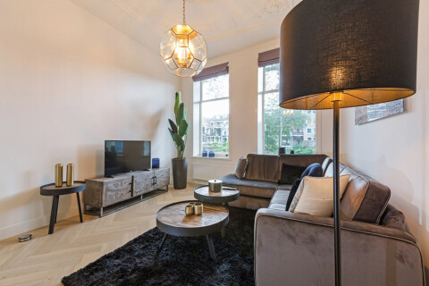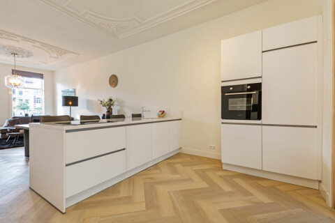 Dit prachtige en volledig gemeubileerde 3-kamer appartement is gelegen op de beletage van dit prachtige pand. Bij binnenkomst heeft u toegang tot de ruime woonkamer. Vanuit de woonkamer heeft u toegang tot de open keuken die is v.v. alle benodigde inbouwapparatuur zoals een vaatwasser, koelkast, oven, kookplaat en afzuigkap. Aan de achterzijde zijn er 2 slaapkamers gelegen van ca. 9m2 en 6m2. Vanuit de grote slaapkamer heeft u toegang tot een ruime tuin ca. 30m2 die is gelegen op het oosten. In het midden is de ruime badkamer gelegen met douche, was/droogcombinatie, dubbele wastafel en toilet. Kortom een prachtig nieuw appartement op een rustige locatie.